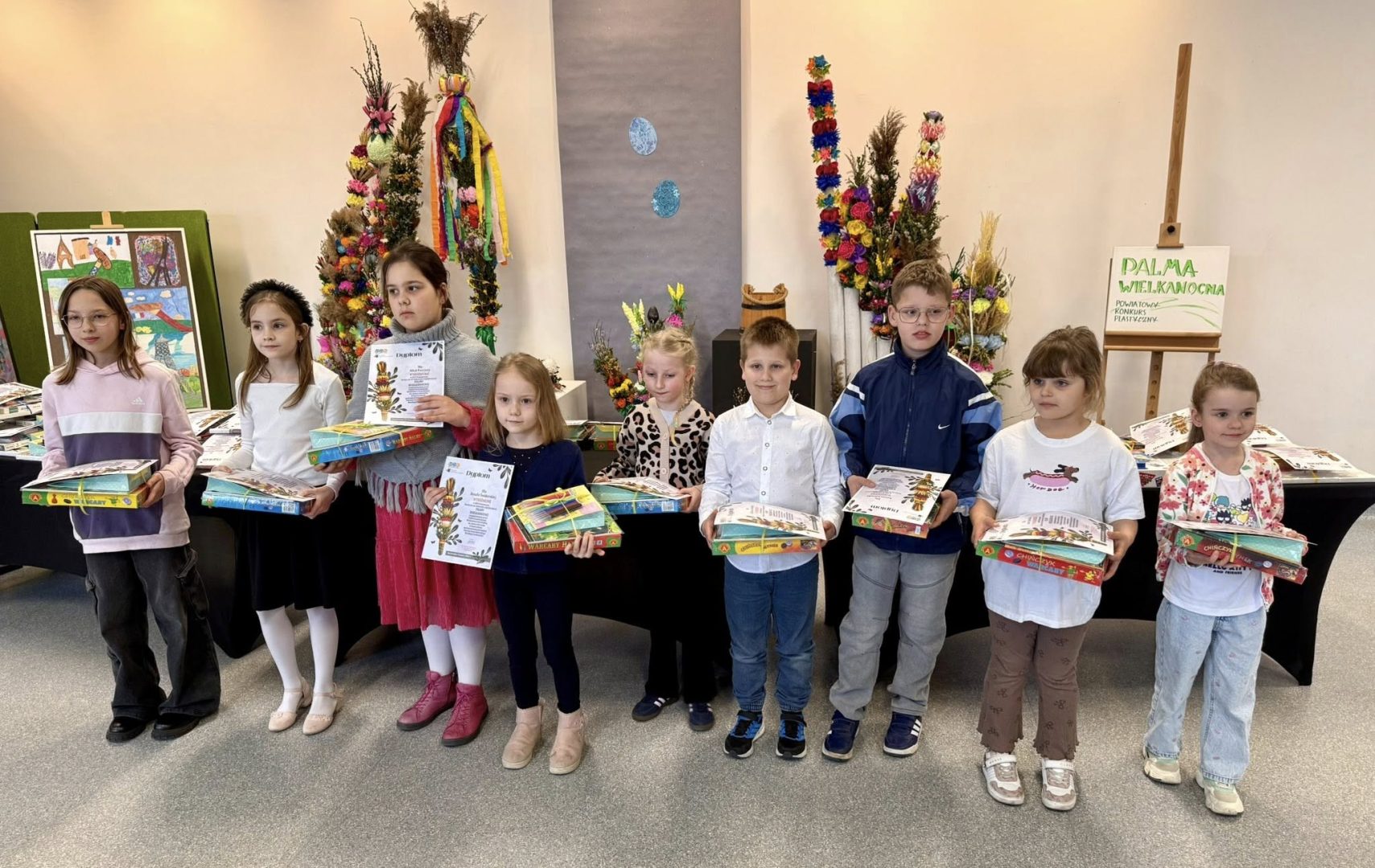 Do konkursu zgłoszono wiele niezwykle barwnych i starannie wykonanych prac, które zachwyciły jury pomysłowością, dbałością o detale oraz nawiązaniem do tradycji wielkanocnych. Każda palma była wyjątkowa i stanowiła piękne świadectwo kreatywności uczestników.
