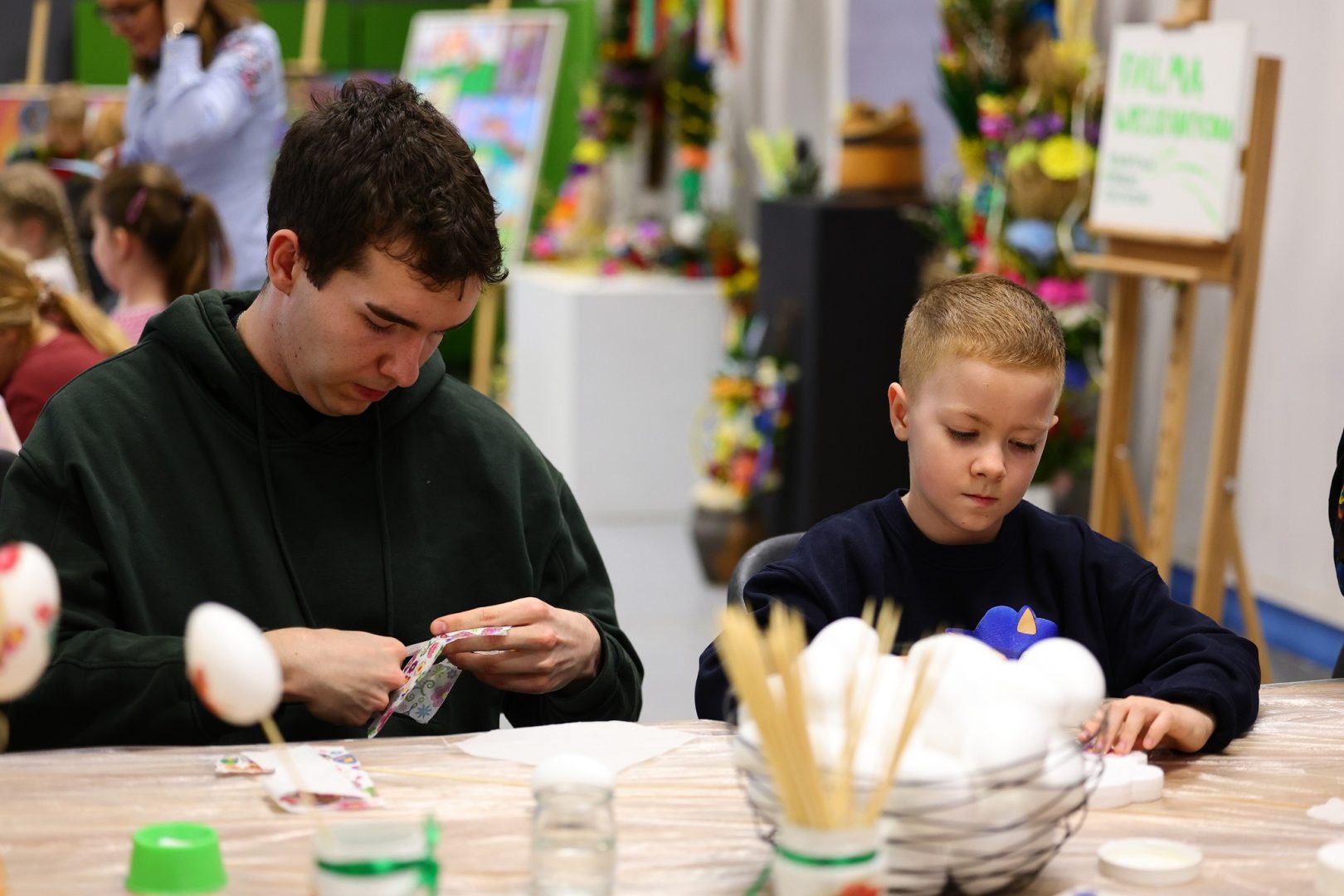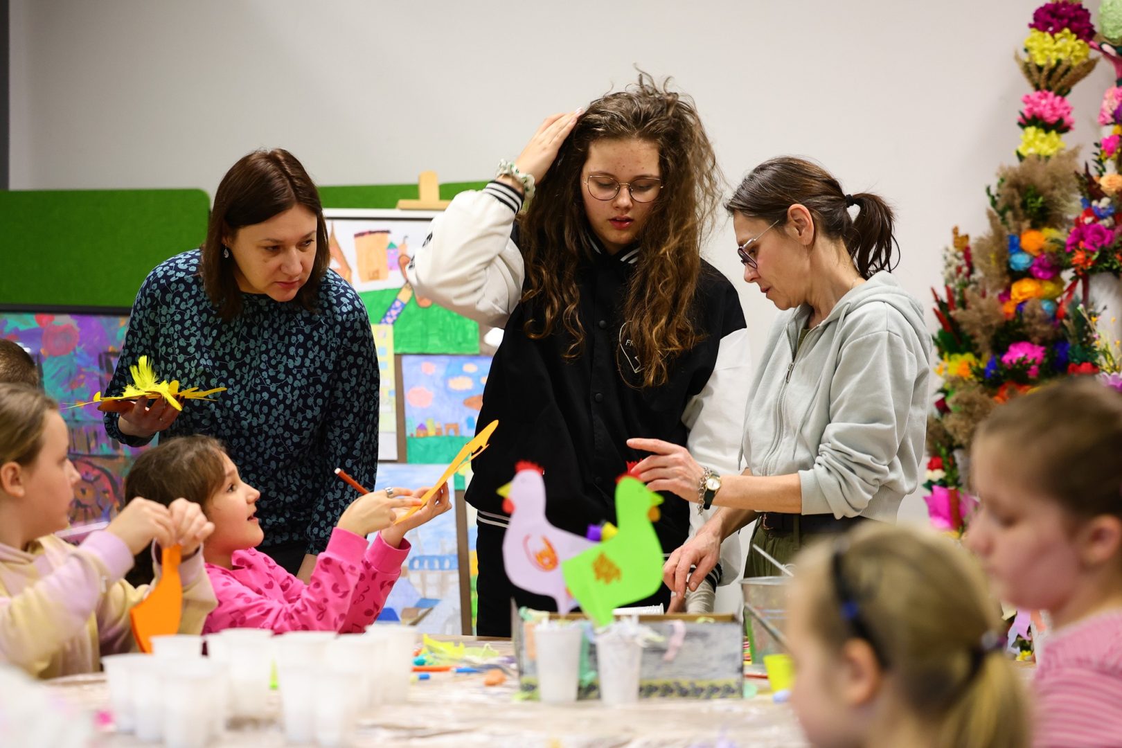 Podczas spotkania nie zabrakło uśmiechów, inspirujących pomysłów oraz wspólnej, pełnej zaangażowania zabawy. Warsztaty były doskonałą okazją do rozwijania kreatywności, integracji oraz wprowadzenia się w wiosenny, świąteczny nastrój.